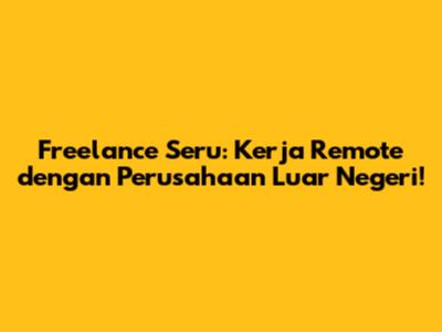 Freelance dengan perusahaan luar negeri? Sounds awesome, right, guys? Zaman sekarang, dunia kerja makin fleksibel dan menawarkan banyak banget peluang. Salah satunya adalah kerja lepas atau remote bareng foreign companies. Buat kalian yang pengen punya pengalaman kerja internasional, cari penghasilan lebih, atau sekadar pengen punya kebebasan waktu dan lokasi, artikel ini pas banget buat kalian. Kita bakal bahas tuntas tentang serunya kerja freelance dengan perusahaan luar negeri, mulai dari keuntungan, tantangan, sampai tips-tipsnya biar sukses. Yuk, simak!