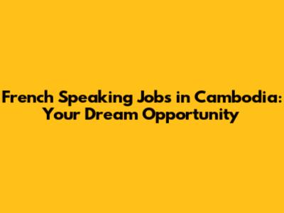 Why Choose French Speaking Jobs in Cambodia?