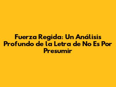En conclusión, 'No Es Por Presumir' de Fuerza Regida es mucho más que una canción; es un himno que celebra la autenticidad, la perseverancia y la humildad. La letra, cargada de significado, junto con su estilo musical único, ha resonado con millones de personas. La canción ha dejado una marca indeleble en la música regional mexicana, inspirando a otros artistas y fortaleciendo la conexión de Fuerza Regida con su audiencia. El éxito de la canción es un testimonio del talento y la visión artística de Fuerza Regida. 'No Es Por Presumir' es un recordatorio de que la música puede ser una poderosa herramienta para la reflexión y la conexión humana. La canción continuará siendo un referente en la música regional mexicana, celebrada por su honestidad y su mensaje inspirador. Fuerza Regida ha logrado crear un legado duradero con esta canción, y su impacto se seguirá sintiendo en la industria musical en los años venideros. 'No Es Por Presumir' es una canción que trasciende generaciones, uniendo a personas a través de su mensaje universal. En resumen, la canción es un testimonio del poder de la música para tocar los corazones y cambiar el mundo. Fuerza Regida ha logrado crear una obra maestra que perdurará en el tiempo, uniendo a las personas a través de la música.