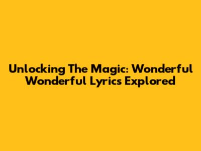 Unlocking The Magic: Wonderful Wonderful Lyrics Explored