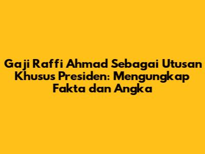 Gaji Raffi Ahmad sebagai Utusan Khusus Presiden terdiri dari gaji pokok dan tunjangan. Gaji pokok ditetapkan berdasarkan peraturan pemerintah dan disesuaikan dengan jabatan dan masa kerja. Tunjangan diberikan berdasarkan jabatan, tanggung jawab, dan kinerja. Informasi mengenai detail gaji dan tunjangan seringkali tidak dipublikasikan secara terbuka, namun dapat ditemukan melalui sumber-sumber yang kredibel, seperti peraturan pemerintah dan laporan keuangan.