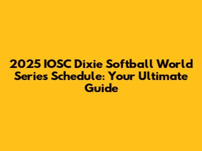 2025 IOSC Dixie Softball World Series Schedule: Your Ultimate Guide