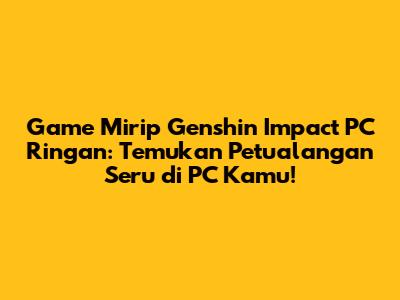 Guys, bayangkan kamu bisa menjelajahi dunia yang luas, bertarung melawan musuh-musuh yang menantang, dan mengumpulkan karakter-karakter yang punya kemampuan unik, semua itu tanpa harus khawatir PC kamu nge-lag. Itulah yang ditawarkan oleh game mirip Genshin Impact PC ringan. Jadi, tunggu apa lagi? Mari kita mulai petualangan mencari game-game keren ini!