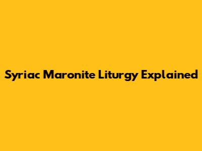 Syriac Maronite Liturgy Explained