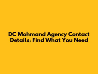DC Mohmand Agency Contact Details: Find What You Need