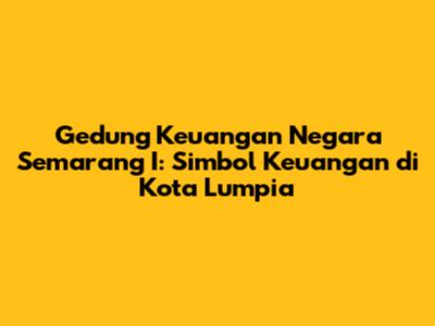Hey guys! Let's dive into something super interesting today – Gedung Keuangan Negara Semarang I. This isn't just any building; it's a significant landmark in the heart of Semarang, holding a special place in the city's financial landscape. We'll explore everything from its fascinating history and unique architecture to the important functions it serves. Ready to learn more? Let's go!