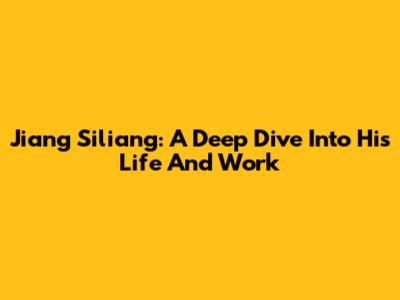 Jiang Siliang: A Deep Dive Into His Life And Work