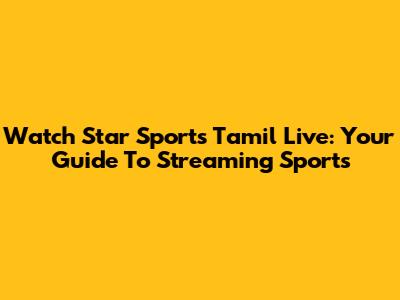 Watch Star Sports Tamil Live: Your Guide To Streaming Sports