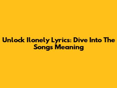 Unlock Ilonely Lyrics: Dive Into The Song's Meaning