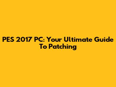 PES 2017 PC: Your Ultimate Guide To Patching