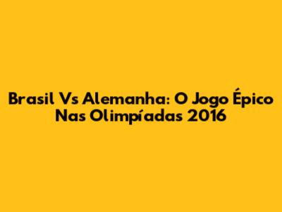 Brasil Vs Alemanha: O Jogo Épico Nas Olimpíadas 2016