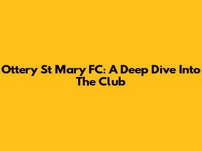 Ottery St Mary FC: A Deep Dive Into The Club