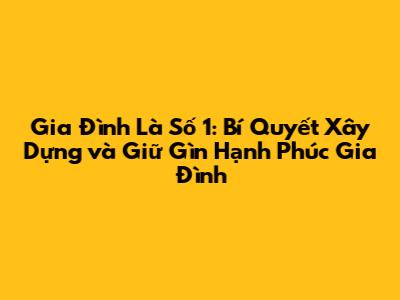 Gia đình là số một. Gia đình là nền tảng, là nơi chúng ta tìm thấy tình yêu thương, sự che chở và là động lực để chúng ta vượt qua mọi khó khăn trong cuộc sống. Để xây dựng và giữ gìn hạnh phúc gia đình, chúng ta cần phải chú trọng đến nhiều yếu tố, từ giao tiếp, tình yêu thương, sự tôn trọng đến việc chia sẻ trách nhiệm và học cách đối diện với khó khăn. Hãy luôn dành thời gian cho gia đình, chăm sóc sức khỏe, xây dựng mạng lưới hỗ trợ và giữ gìn ngọn lửa tình yêu. Hãy cùng nhau xây dựng một gia đình hạnh phúc, nơi mỗi thành viên đều cảm thấy được yêu thương, tôn trọng và có ý nghĩa. Hãy nhớ rằng, hạnh phúc gia đình là một hành trình, không phải là một đích đến. Hãy cùng nhau đi trên hành trình này, vun đắp tình yêu thương và xây dựng một tương lai tươi sáng.