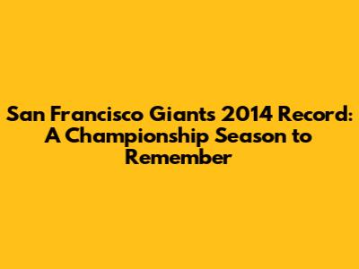 The San Francisco Giants' 2014 season was a remarkable journey filled with unforgettable moments and inspiring performances. Their 88-74 regular season record was just the beginning of an improbable postseason run that culminated in their third World Series title in five years. Led by Madison Bumgarner's dominant pitching and clutch performances from key players like Buster Posey, Hunter Pence, and Pablo Sandoval, the Giants overcame adversity and defied expectations to achieve baseball immortality. The 2014 season will forever be remembered as a testament to the Giants' resilience, determination, and unwavering belief in themselves. It was a season for the ages, a season that will be cherished by Giants fans for generations to come. Guys, this team showed us what it means to never give up and to always believe in the power of teamwork. The San Francisco Giants 2014 record is more than just a set of numbers; it's a story of heart, grit, and the magic of baseball. So here's to the Giants, and here's to a season we'll never forget!