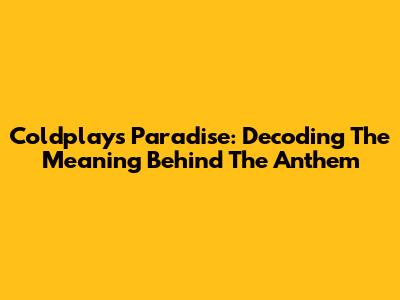 Coldplay's Paradise: Decoding The Meaning Behind The Anthem