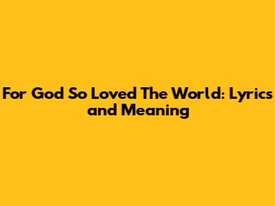 Hey guys, ever wondered about those profound lyrics from "For God So Loved The World"? This classic hymn, often sung in churches and during special services, carries a message that's as powerful today as it was centuries ago. It's all about the ultimate act of love and sacrifice, a theme that resonates deeply across cultures and generations. We're going to dive deep into the lyrics, explore their meaning, and talk about why this particular passage from the Bible continues to inspire so many. Get ready to unpack the beautiful simplicity and immense theological weight packed into just a few verses. It's more than just a song; it's a cornerstone of Christian faith, reminding us of a love that is unconditional, boundless, and transformative. So, grab a cup of your favorite beverage, get comfortable, and let's explore this timeless message together. We'll break down the verses, understand the context, and appreciate the enduring power of these sacred words that have touched countless lives. This isn't just about memorizing lyrics; it's about connecting with a message that offers hope, redemption, and an incredible perspective on divine love. Let's get started on this journey of understanding and appreciation.