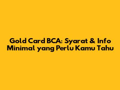 Hai guys! Kalian penasaran kan, Gold Card BCA minimal berapa sih sebenarnya? Nah, artikel ini bakal ngebahas tuntas soal kartu kredit Gold BCA, mulai dari syarat pengajuan, limit minimal, hingga keuntungan yang bisa kalian dapatkan. Jadi, simak terus ya!