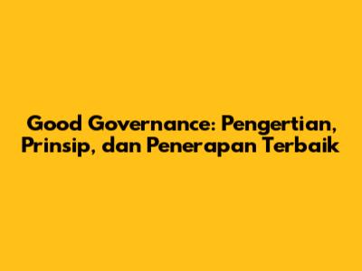 Memahami Pengertian Good Governance
