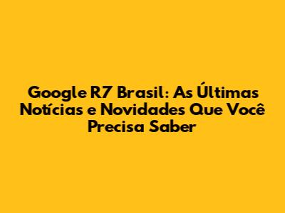 As Últimas Notícias do Google R7 Brasil: Fique por Dentro de Tudo!
