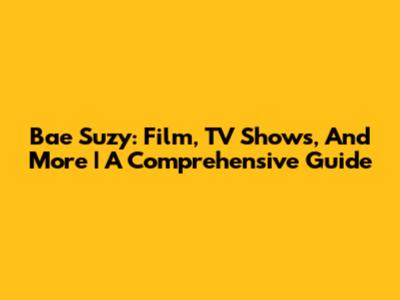 Bae Suzy: Film, TV Shows, And More | A Comprehensive Guide