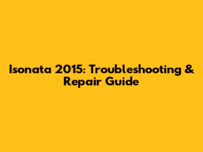 Isonata 2015: Troubleshooting & Repair Guide
