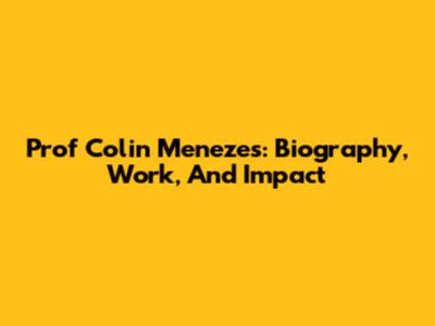 Prof Colin Menezes: Biography, Work, And Impact