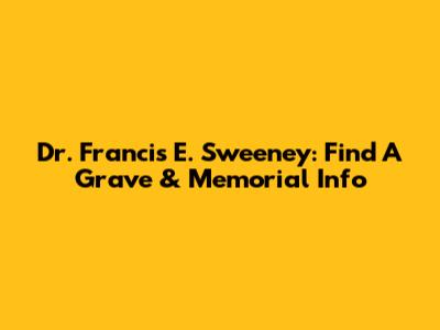 Dr. Francis E. Sweeney: Find A Grave & Memorial Info