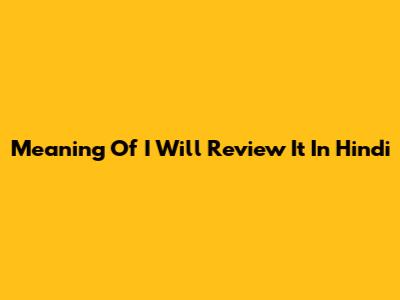 Meaning Of 'I Will Review It' In Hindi