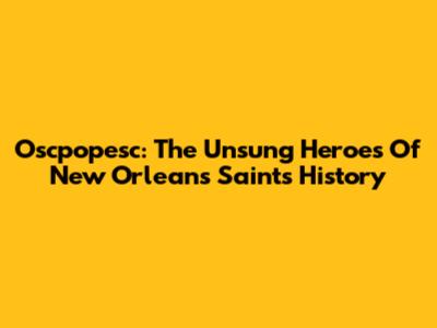 Oscpopesc: The Unsung Heroes Of New Orleans Saints History