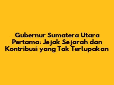Kesimpulan. Dengan mengenal gubernur Sumatera Utara pertama, kita dapat belajar banyak tentang sejarah dan membangun masa depan Sumatera Utara yang lebih baik. Mari kita hargai jasa-jasa para pahlawan dan teruskan perjuangan mereka untuk membangun Sumatera Utara yang lebih baik.