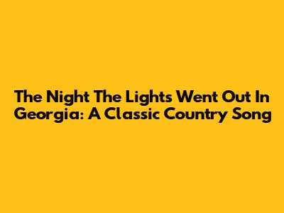 The Night The Lights Went Out In Georgia: A Classic Country Song