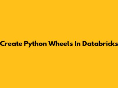 Create Python Wheels In Databricks