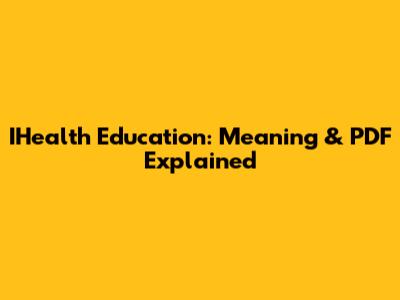 IHealth Education: Meaning & PDF Explained
