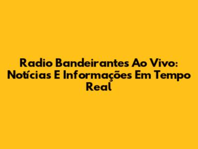 Radio Bandeirantes Ao Vivo: Notícias E Informações Em Tempo Real