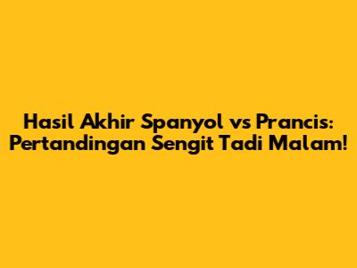 Hey guys! So, you're probably here because you're dying to know what went down in that epic Spain vs. France showdown last night, right? Well, you're in the right place! We're diving deep into the final score, the key moments, and everything else that made this match a must-watch. Get ready for a recap that'll make you feel like you were right there on the pitch, witnessing all the drama unfold. We'll break down the game, analyze the performances, and give you the lowdown on what it all means for both teams. Whether you're a die-hard fan or just curious about the result, we've got you covered. Let's get this show on the road and uncover the final score and the story behind it! Prepare yourself for a thrilling ride through the highlights of last night's clash between two football giants. It was a game filled with intensity, tactical battles, and individual brilliance. We will talk about the goals scored, the crucial saves, and the game-changing moments that shaped the outcome. We'll also take a look at the overall performance of each team, highlighting their strengths and weaknesses. Understanding the final score is just the beginning; we'll provide a comprehensive analysis of the match, bringing you closer to the heart of the action. So, buckle up and get ready for a detailed breakdown that will leave you informed and entertained. Let's start with the most important question: What was the final score? Keep reading to find out!