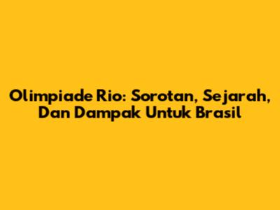Olimpiade Rio: Sorotan, Sejarah, Dan Dampak Untuk Brasil