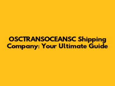 OSCTRANSOCEANSC Shipping Company: Your Ultimate Guide