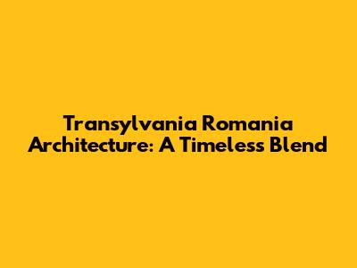 Transylvania Romania Architecture: A Timeless Blend