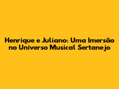 Henrique e Juliano são, sem dúvida, uma das duplas sertanejas mais queridas e bem-sucedidas do Brasil. Com suas letras que falam de amor, desilusão e alegria, e suas melodias marcantes, eles conquistaram o coração de milhões de fãs por todo o país e até mesmo no exterior. Se você é fã da dupla ou está apenas começando a descobrir o talento desses artistas, este artigo é para você! Vamos mergulhar no mundo de Henrique e Juliano, explorando suas músicas, shows, novidades e tudo mais que você precisa saber sobre essa dupla sensacional.