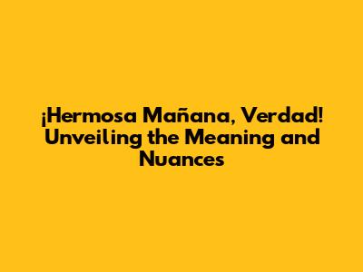Hey guys! Ever heard someone exclaim "¡Hermosa mañana, verdad!" and wondered what they meant? You're in the right place! This phrase is a common and lovely way to express appreciation for a beautiful morning in Spanish. But, like all languages, there's a bit more to it than a simple translation. Let's dive in and explore the meaning, context, and some cool ways to use this phrase yourself. We'll break down the literal translation, explore the cultural context, and give you some examples so you can confidently use it. Ready to unlock the secrets of this cheerful Spanish greeting? Let's go!