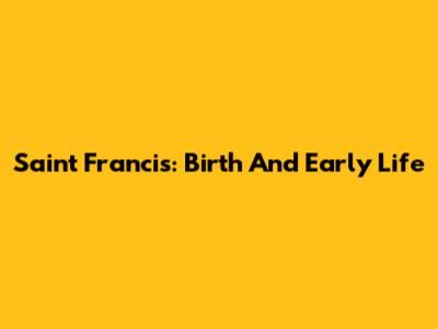 Saint Francis: Birth And Early Life
