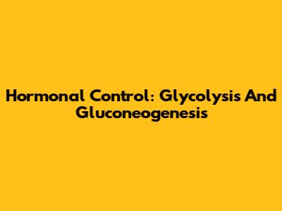 Hormonal Control: Glycolysis And Gluconeogenesis