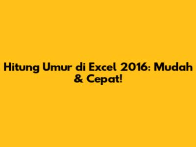 Menghitung umur di Excel 2016 itu sebenarnya gampang banget, guys! Seringkali kita butuh banget fitur ini, entah itu buat data personalia, database pelanggan, atau bahkan cuma sekadar iseng ngitung umur teman dan keluarga. Bayangkan saja kalau kalian punya ribuan data tanggal lahir dan harus menghitung satu per satu secara manual. Pasti ribet dan makan waktu banget, kan? Nah, di sinilah Excel datang sebagai pahlawan super kita! Dengan beberapa rumus sederhana, kalian bisa menghemat banyak waktu dan tenaga. Artikel ini bakal jadi panduan lengkap kalian, mulai dari yang paling dasar sampai tips dan trik yang mungkin belum pernah kalian tahu sebelumnya. Kita akan bahas berbagai metode paling efektif dan efisien untuk mendapatkan hasil yang akurat, termasuk bagaimana cara agar perhitungan umur kalian bisa update secara otomatis setiap hari. Jadi, siap-siap ya, karena setelah ini, menghitung umur di Excel 2016 bukan lagi masalah buat kalian. Kami akan mengajak kalian menyelami fungsi-fungsi rahasia dan cara kombinasinya supaya hasil yang didapat benar-benar sesuai dengan yang kalian inginkan, tanpa perlu pusing mikirin tanggal kabisat atau jumlah hari di setiap bulan. Ini bukan cuma tentang rumus, tapi tentang bagaimana kalian bisa memanfaatkan Excel sebagai alat produktivitas yang powerful. Yuk, langsung aja kita kupas tuntas rahasianya bersama-sama, biar kalian jadi jagoan Excel!