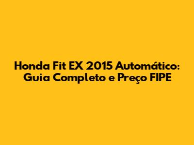 Honda Fit EX 2015 automático, um carro que conquistou muitos corações, né, guys? Se você está pensando em adquirir um, ou apenas curioso sobre o valor e as características, este guia é para você! Vamos mergulhar fundo no mundo do Honda Fit EX 2015 automático, explorando tudo, desde o preço FIPE até os detalhes que o tornam um carro tão especial. Preparados? Então, bora!