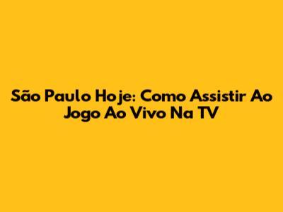 São Paulo Hoje: Como Assistir Ao Jogo Ao Vivo Na TV