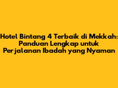 Mencari hotel bintang 4 di Mekkah yang menawarkan kenyamanan, fasilitas lengkap, dan lokasi strategis? Kalian berada di tempat yang tepat! Mekkah, kota suci bagi umat Muslim, dipenuhi dengan berbagai pilihan akomodasi yang dirancang untuk memenuhi kebutuhan dan preferensi setiap jamaah. Dalam panduan ini, kita akan membahas secara mendalam tentang hotel bintang 4 terbaik di Mekkah, mulai dari rekomendasi hotel, fasilitas yang ditawarkan, lokasi strategis, hingga tips memilih hotel yang sesuai dengan anggaran dan kebutuhan kalian. Jadi, mari kita mulai petualangan mencari penginapan terbaik untuk perjalanan ibadah yang tak terlupakan!