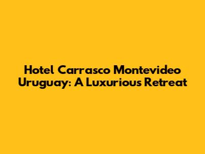 Hey there, travel enthusiasts! If you're dreaming of a luxurious getaway in Montevideo, Uruguay, look no further than Hotel Carrasco. This iconic hotel isn't just a place to rest your head; it's an experience. Nestled in the heart of the Carrasco neighborhood, this historical landmark seamlessly blends classic elegance with modern comforts. Ready to dive deep into what makes Hotel Carrasco a must-visit destination?