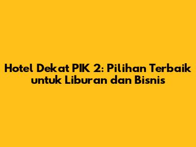Guys, lagi cari hotel dekat PIK 2 yang oke buat liburan atau keperluan bisnis? Wah, pas banget nih! Kawasan Pantai Indah Kapuk 2 (PIK 2) memang lagi hits banget dengan segala pesonanya. Mulai dari tempat wisata, kuliner yang menggoda, sampai pusat bisnis yang menjanjikan. Makanya, kebutuhan akan akomodasi yang nyaman dan strategis juga makin meningkat. Artikel ini bakal ngebahas tuntas tentang hotel di PIK 2 dan sekitarnya, lengkap dengan tips memilih, rekomendasi terbaik, serta informasi penting lainnya. Jadi, simak terus ya!