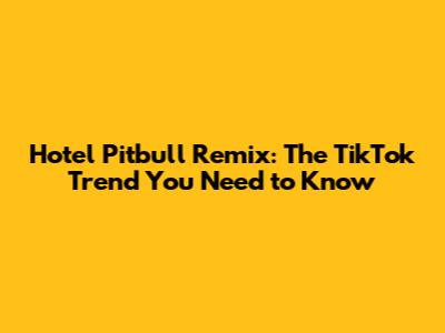 Have you heard the latest buzz on TikTok? It's all about the Hotel Pitbull Remix, and trust me, it's as catchy and hilarious as it sounds! This trend has taken over For You Pages everywhere, and if you're not already in the loop, now's the time to catch up. Let's dive into what makes this remix so popular, how it started, and why everyone's grooving to it.