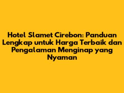 Hai, guys! Kalian yang lagi cari hotel di Cirebon khususnya Hotel Slamet, pasti penasaran kan soal harga dan fasilitasnya? Nah, artikel ini bakal jadi panduan lengkap buat kalian semua. Kita akan bedah tuntas tentang harga hotel Slamet Cirebon, mulai dari jenis kamar, fasilitas yang ditawarkan, sampai tips jitu buat dapetin harga terbaik. Jadi, simak terus ya!
